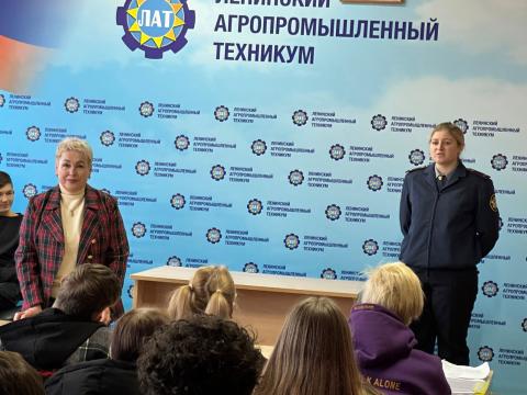 24 октября 2025г.в рамках профориентационной работы сотрудники ФКУ ИК-28 УФСИН России по Волгоградской области посетили ГБПОУ "Ленинский агропромышленный техникум " с целью агитации выпускников на поступление в ведомственные ВУЗы уголовно-исполнительной системы